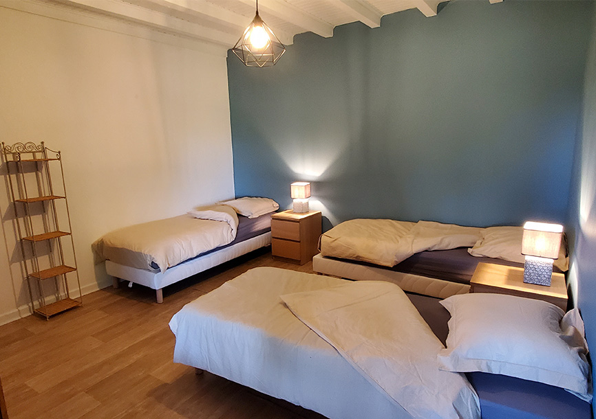 Le gîte est l’avant-dernière maison d’une impasse. Le lieu est donc bien isolé tout en étant proche du centre village.